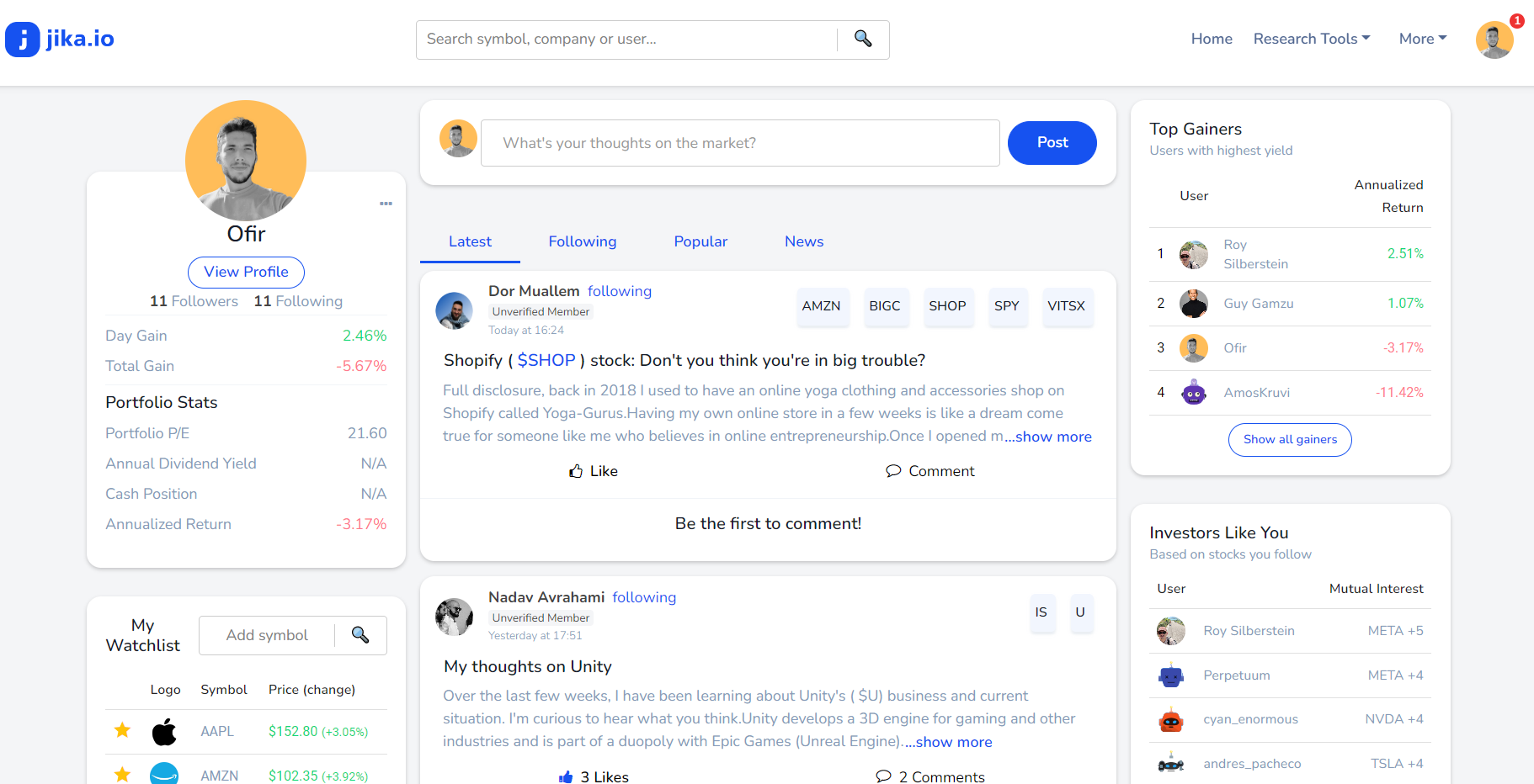 Updated: Jan 08 2023SummaryI believe Jika has the potential of helping many to invest better in the stock market, regardless of their expertise. In addition, the possibilities of a community are endless, and the concept of social investing is very powerful in my eyes.