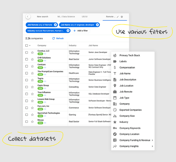 Each user adheres to a distinct framework regarding quality, delivery, and guarantees. Our mission is to provide timely job signals that facilitate your development. To improve your job posting signals, concentrate on the relevant information (the gold) while filtering out the unnecessary details (the rocks). This approach minimizes the chances of missing out on valuable opportunity signals or leaving your team lacking essential data for efficiency. With more than 25 filtering options available, you can discover unique signals that are exclusive to rocks.gold. Our customer success program is committed to assisting users in refining their data delivery in line with their search preferences. Additionally, you have the ability to establish personalized alerts and tracking systems to remain informed about significant signals or changes from important organizations. You can choose to receive filtered job signals just minutes after they are made available, or you can select timely batch exports to enhance your workflow. By leveraging these tools, you can maintain a competitive edge in your field while effectively navigating the job landscape. It’s essential to stay proactive and engaged with the evolving job market to maximize your opportunities.