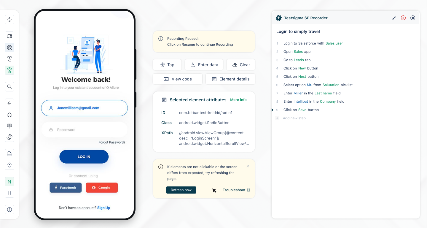 While the platform's architecture is based on Java, its automated testing capabilities remain code-agnostic, allowing teams to describe user actions in straightforward English using its built-in NLP Grammar or to create comprehensive test scripts through the Test Recorder. Additionally, Testsigma incorporates features such as visual testing, data-driven testing, two-factor authentication testing, and an AI component that resolves unstable elements and test steps, locates regression-affected scripts, and offers suggestions to address test failures. By consolidating numerous tools within the quality assurance process, Testsigma empowers teams to perform testing efficiently, continuously, and in a collaborative manner, ultimately streamlining their workflows and enhancing productivity.
