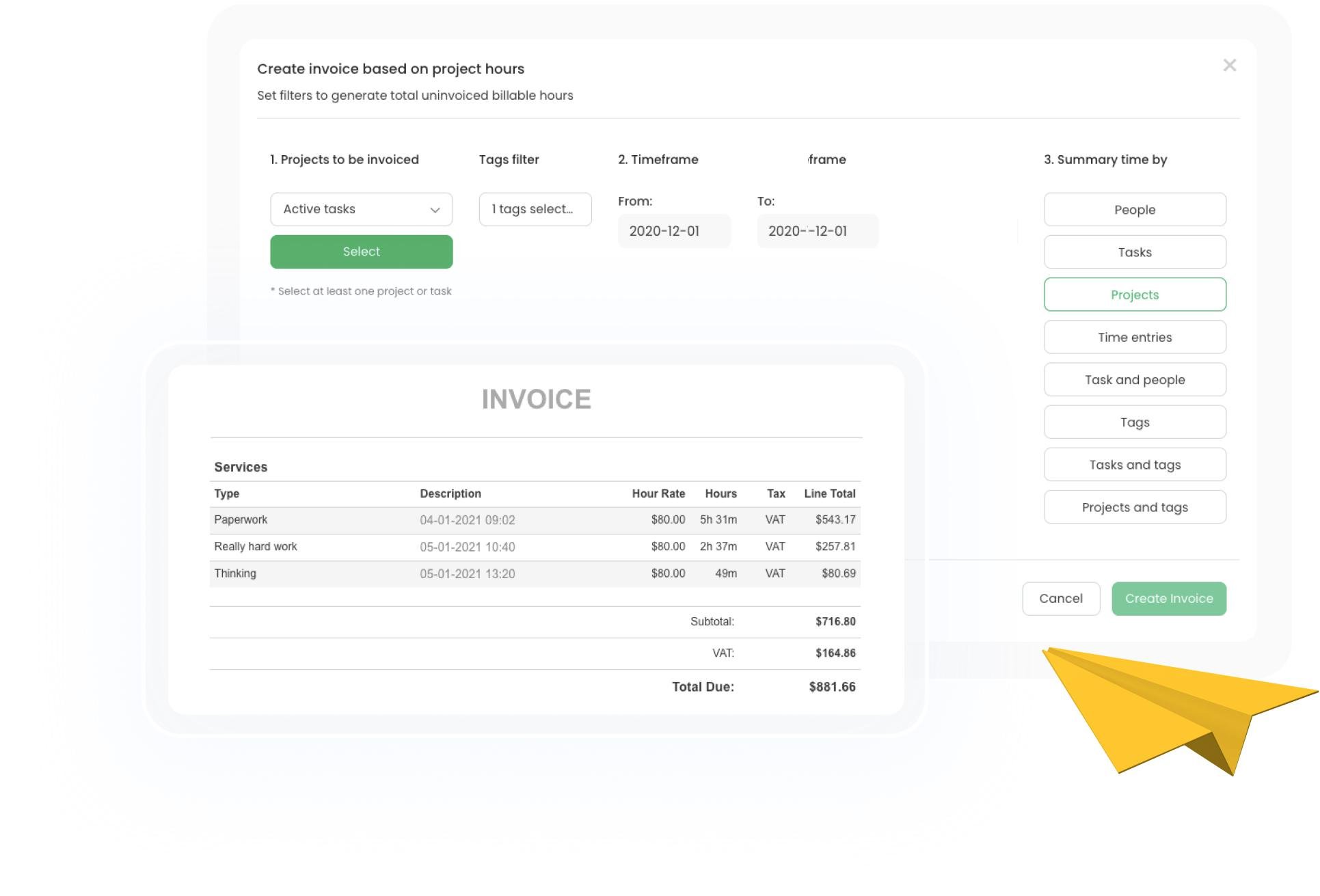 - It allows me to add taxes, calculate the payroll payment and perform billing in the same place, TimeCamp allows me to prepare the payment plan for each employee, and in an automated way, it makes the discounts of the taxes that must be paid, this It makes work much easier, since when making payroll payments, all you have to do is send the money and send them the work report obtained with TimeCamp.