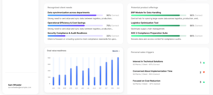 Discover the factors that contribute to the success or failure of your deals. Harness the power of generative AI to streamline your sales process with valuable tools such as call recordings, deal assessments, sentiment tracking, and expert coaching advice. Quickly identify action items, objections, and key challenges to evaluate the progress of your transactions. With our solution, you can drastically improve your demo conversion rates by an impressive 25% to 40%. Additionally, pinpoint areas for improvement in your future calls. Rather than just recording conversations, leverage comprehensive meeting analytics through Salesify to capture every detail. Effortlessly generate tailored AI-powered follow-up emails that encapsulate the discussions and outcomes from your meetings. Furthermore, within your organization, AI coaching provides personalized insights and support for teams and managers alike, prioritizing enhanced performance, effective communication, and optimized workflows. This method not only refines sales techniques such as handling objections and negotiating but also increases conversion rates and customizes customer interactions to suit distinct preferences. By adopting these strategies, you will cultivate a more agile and responsive sales culture, ultimately leading to greater success.
