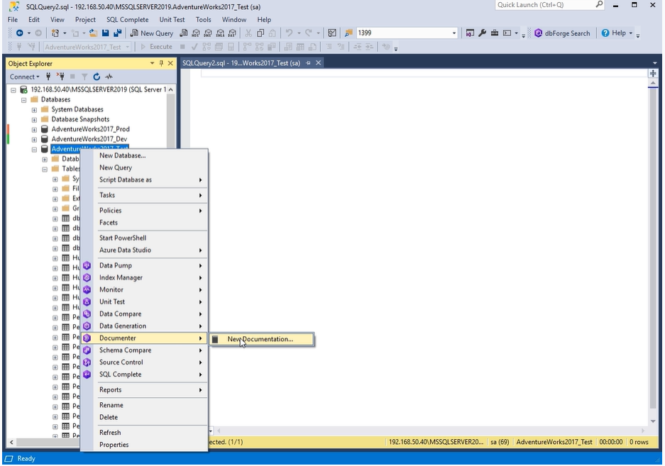 dbForge DevOps Automation for SQL Server is a comprehensive tool that combines various dbForge SQL Server utilities to improve database administration in Continuous Integration (CI) and Continuous Delivery (CD) environments. By integrating seamlessly with SQL Server Management Studio (SSMS), it allows users to set up and oversee CI/CD workflows right from the SSMS interface they are accustomed to.